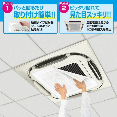 ・必ずフィルターを貼る部分のホコリをふき取り、天井埋込型エアコンの備え付けフィルターをお手入れし、キレイな状態で取付けてください。