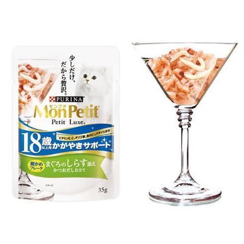 【モンプチ プチリュクスパウチ 18歳以上 まぐろのしらす添え&まぐろのささみ添えの商品詳細】