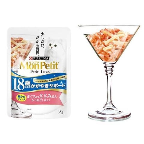 モンプチ プチリュクスパウチ 18歳以上 まぐろのしらす添え&まぐろのささみ添え (8袋入×3セット(1袋35g))