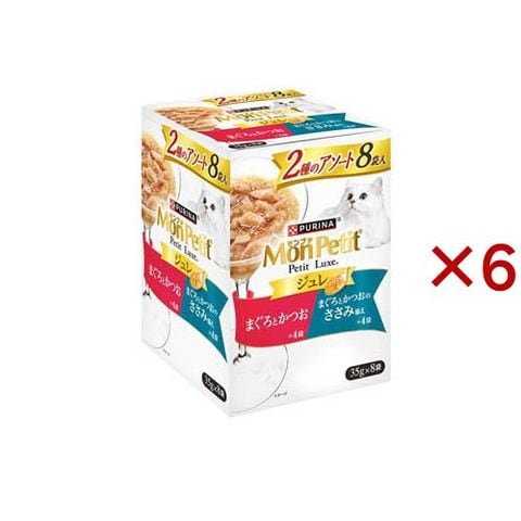 モンプチ プチリュクスパウチ ジュレ まぐろとかつお&まぐろとかつおのささみ添え (8袋入×6セット(1袋35g))