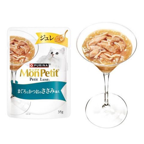 【モンプチ プチリュクスパウチ ジュレ まぐろとかつお&まぐろとかつおのささみ添えの商品詳細】