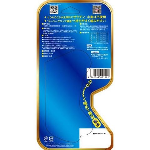 | コーンスターチ、マルトース、ライススターチ、ソルビトール、香料、ヘキサメタリン酸ナトリウム、酸化防止剤(ビタミンC)、着色料(黄色6号) |