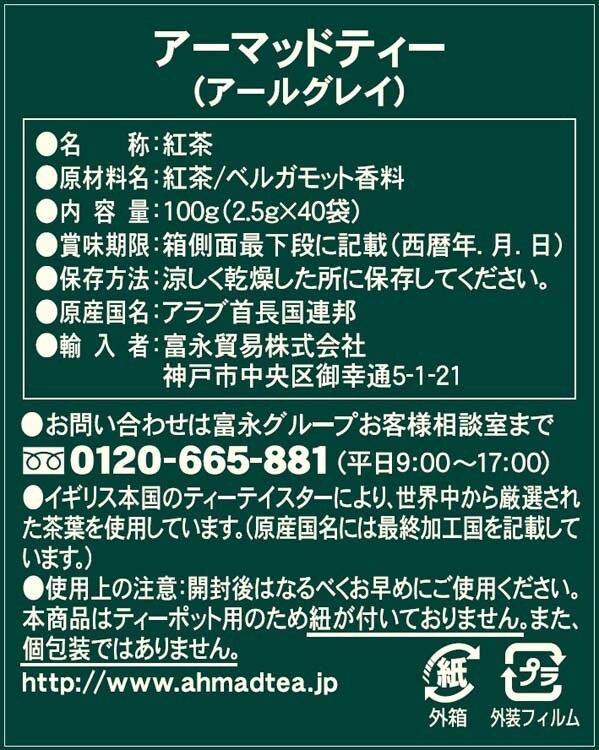 アーマッドティー アールグレイ ティーバッグ ティーポット用 (40袋入×3セット(1袋2.5g))