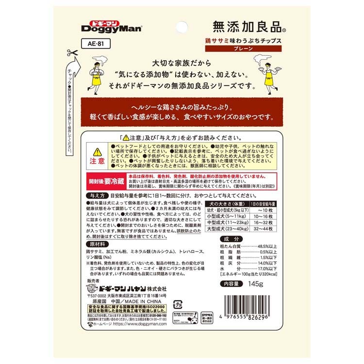 ドギーマン 無添加良品 鶏ササミ味わうぷちチップス プレーン (145g×12セット)
