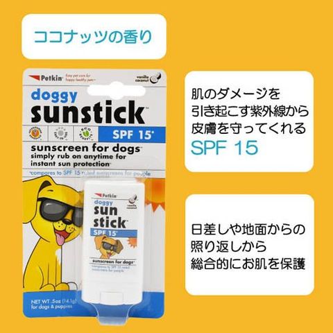 ●肌のダメージを引き起こす紫外線から皮膚を守ってくれるSPF 15の犬用日焼け止めスティック