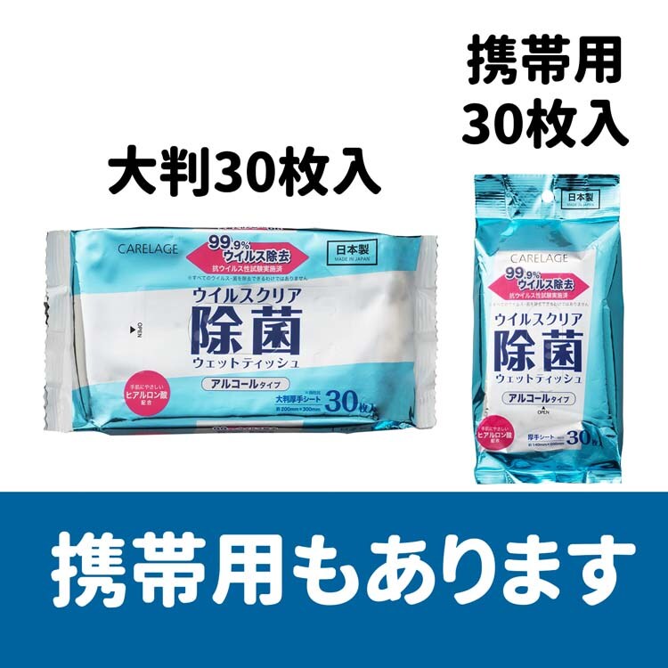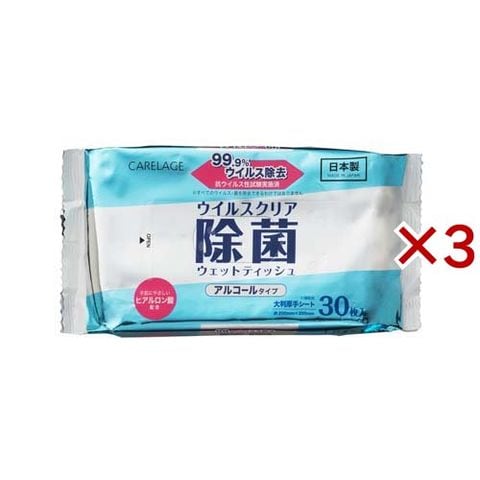 ケアレージュ ウイルスクリア 除菌ウェットティッシュ アルコールタイプ 大判 (30枚入×3セット)