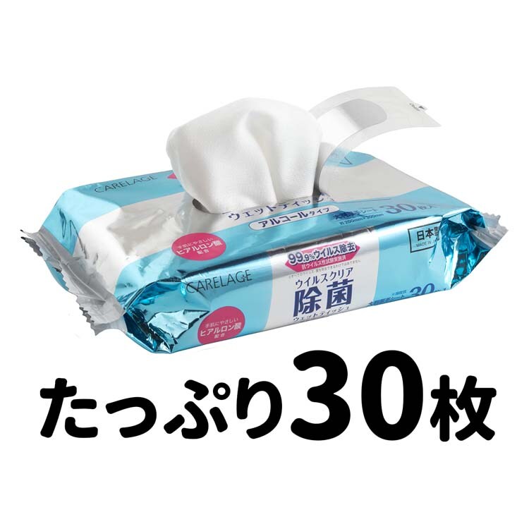 ケアレージュ ウイルスクリア 除菌ウェットティッシュ アルコールタイプ 大判 (30枚入×6セット)