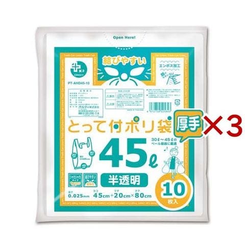プラスプラス HD取っ手付ポリ袋 45L 厚手 半透明 (10枚入×3セット)