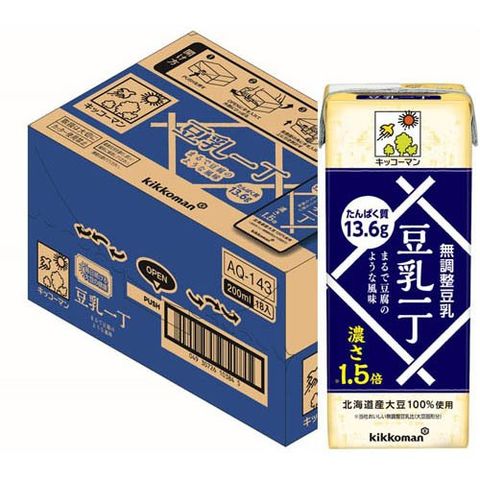 ●大豆固形分14%、メーカー「おいしい無調整豆乳」と比較し1.5倍の濃さ(1本でたんぱく質13.6g含む)