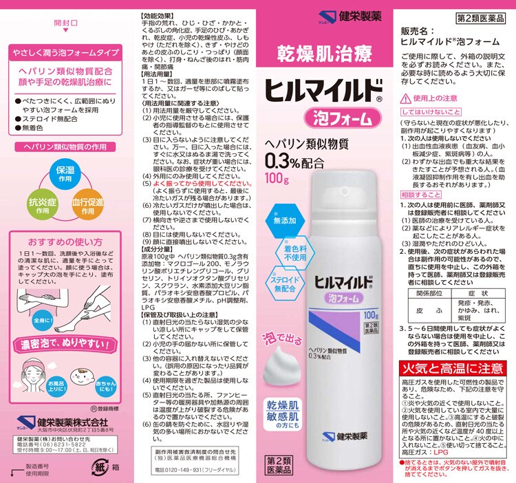 ●ヘパリン類似物質0.3%配合の乾燥肌用治療薬。ベタつきにくく、さっぱりとした使用感で、全身に使いやすい泡フォームを採用。