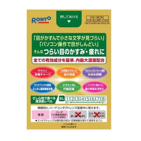 ※添加物として、ホウ酸、ホウ砂、d-ボルネオール、ユーカリ油、クロロブタノール、ベンザルコニウム塩化物、エデト酸Na、ポリソルベート80、pH調節剤を含有します。