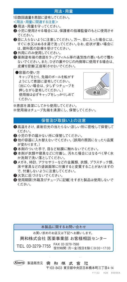 (5)薬剤塗布後の患部をラップフィルム等の通気性の悪いもので覆わないでください。また、ひざの裏やひじの内側等に使用する場合は、皮膚を密着(正座等)させないでください。