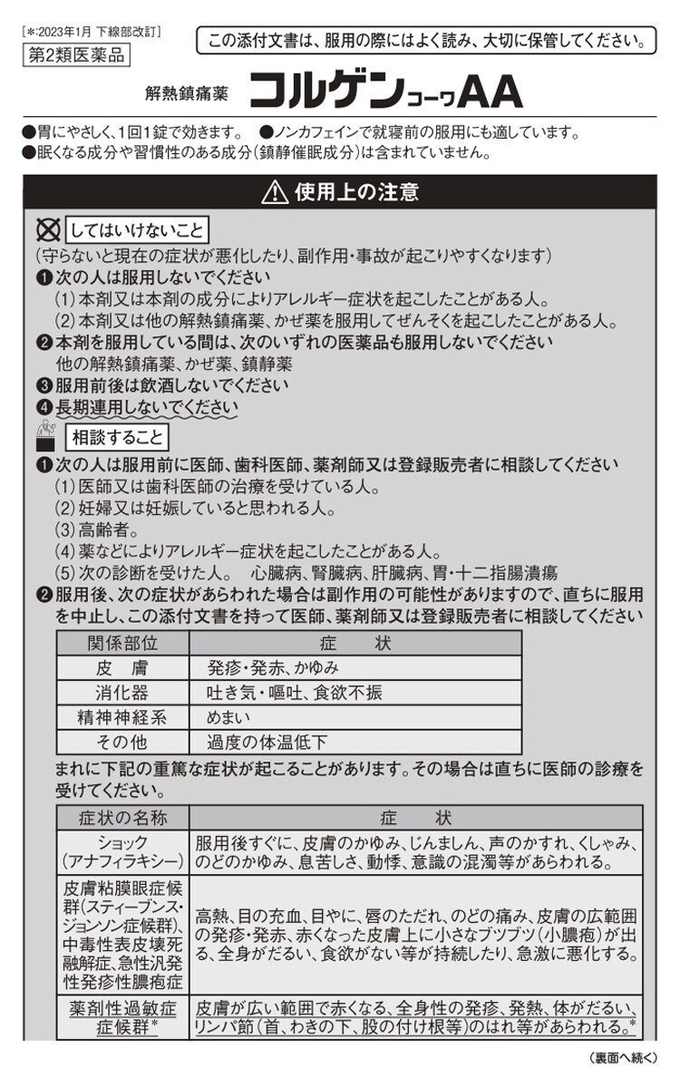 2.服用後、次の症状があらわれた場合は副作用の可能性がありますので、直ちに服用を中止し、添付文書を持って医師、薬剤師又は登録販売者に相談してください
