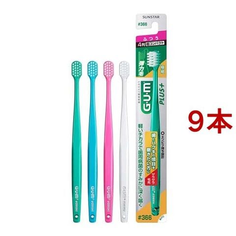 ガム(G・U・M) プラス デンタルブラシ #366 4列超コンパクト ふつう (9本セット)
