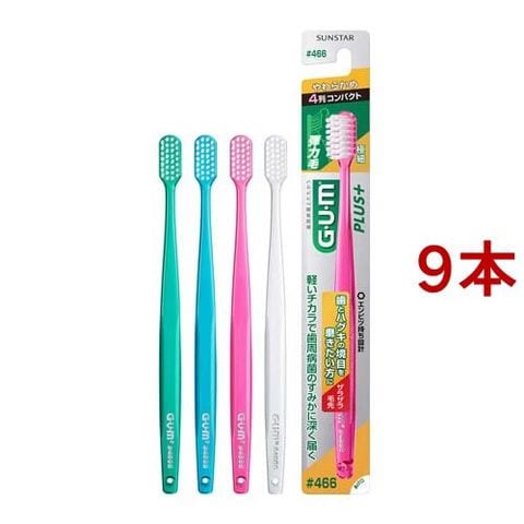 ガム(G・U・M) プラス デンタルブラシ #466 4列コンパクト やわらかめ (9本セット)