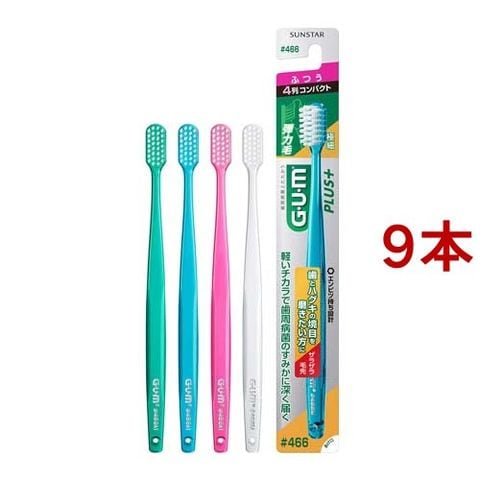 ガム(G・U・M) プラス デンタルブラシ #466 4列コンパクト ふつう (9本セット)