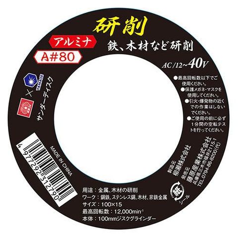 サイズ:100mm×15mm穴砥粒:A(アルミナ)粒度:80最高回転数(min-1):12000「材質」材質:アルミナ