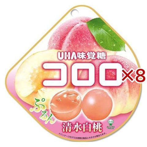 | 果糖ぶどう糖液糖(国内製造)、砂糖、水飴、濃縮果汁(りんご、黄金桃)、コラーゲン、もも、植物油脂/グリセリン、酸味料、ゲル化剤(増粘多糖類)、クエン酸カリウム、リン酸水素二カリウム、香料、光沢剤、セルロース、着色料(アントシアニン)、安定剤(CMC)、(一部に牛肉・もも・りんご・ゼラチンを含む) |