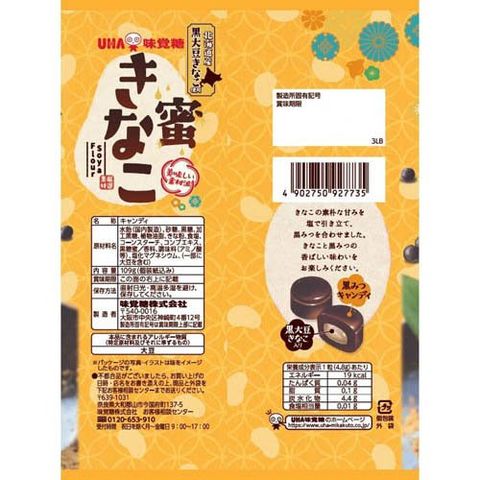 | 水飴(国内製造)、砂糖、黒糖、加工黒糖、植物油脂、きな粉、食塩、コーンスターチ、コンブエキス、黒糖蜜/香料、調味料(アミノ酸等)、塩化マグネシウム、(一部に大豆を含む) |