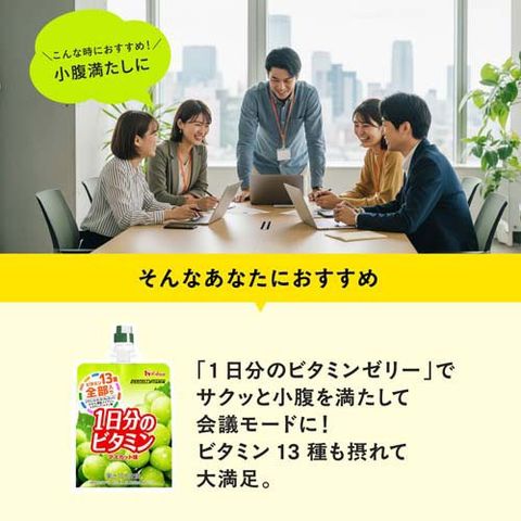 ●栄養素等表示基準値(2015)に基づき、ビタミン全13種類を配合した清涼飲料水(ゼリー飲料)です。