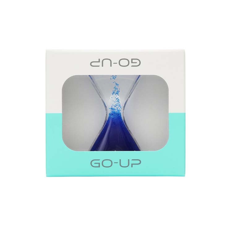 ●カラービーズが液体の中をユラユラと昇っていくので、まるで時が遡るかのような感覚を体験できる「逆」砂時計です。