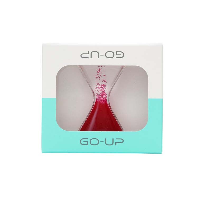 ●カラービーズが液体の中をユラユラと昇っていくので、まるで時が遡るかのような感覚を体験できる「逆」砂時計です。
