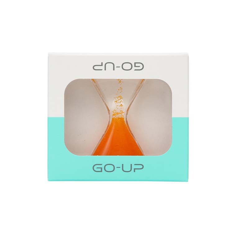 ●カラービーズが液体の中をユラユラと昇っていくので、まるで時が遡るかのような感覚を体験できる「逆」砂時計です。