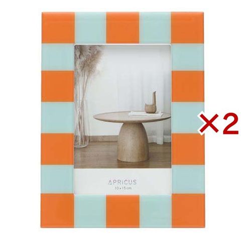 アプリクス フォトフレーム チェック ブルー&オレンジ (2セット)