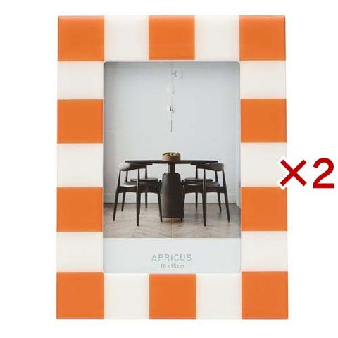 アプリクス フォトフレーム チェック ホワイト&オレンジ (2セット)