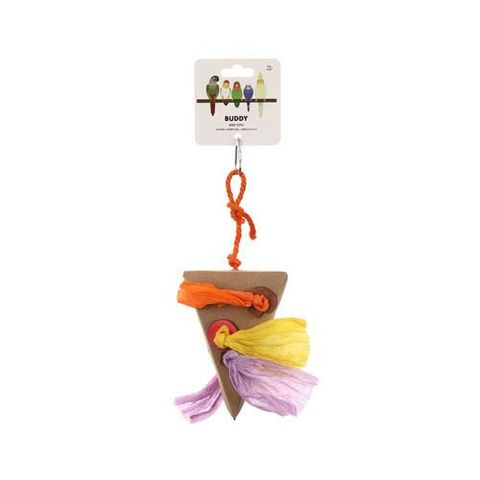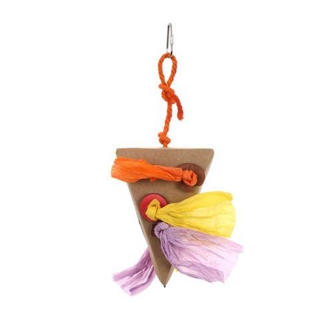 ●紙でできたピザ型の箱にカラフルな紙が入っている楽しい鳥用おもちゃです。