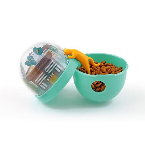 ●中にはフードを入れることもできますので、知育おもちゃとして、そしてゆっくりフードを食べさせるスローフィーダーとして、様々な使い方ができるユニークおもちゃです。