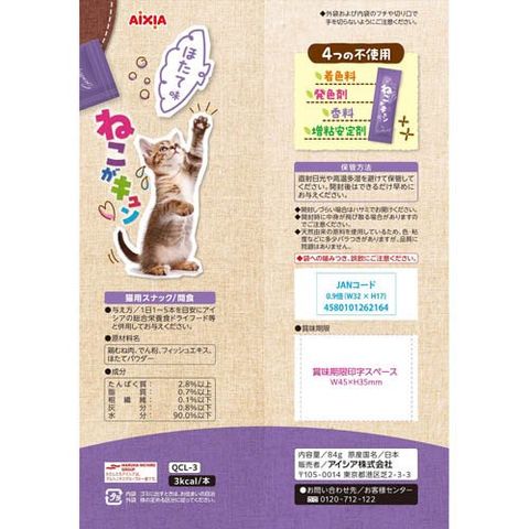 | 鶏むね肉、でん粉、フィッシュエキス、ほたてパウダー |