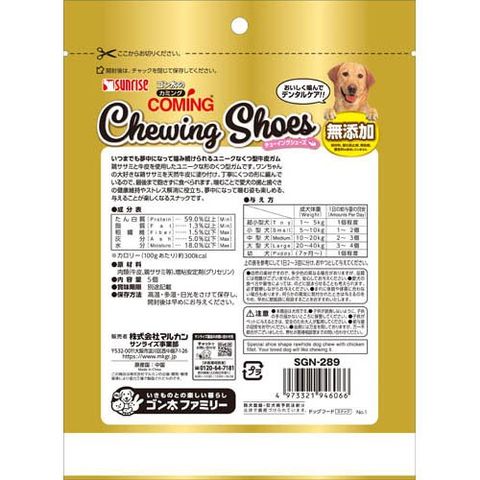 ●鶏ササミと牛皮を使用したユニークな形のシューズ型ガムです。