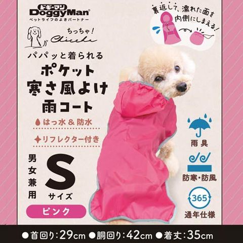 Chiccha! パパッと着られる ポケット寒さ風よけ雨コート S ピンク (18セット)