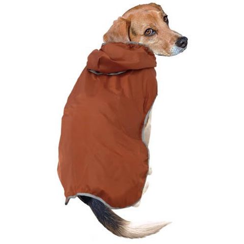 ●小さくたたんでポーチのように持ち歩ける軽くて携行に便利な犬用レインコート。