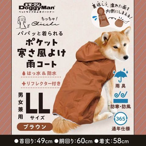 Chiccha! パパッと着られる ポケット寒さ風よけ雨コート LL ブラウン (6セット)