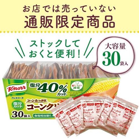 ●※「クノール カップスープ」<コーンクリーム>比40%減塩。(塩分相当量0.47g)
