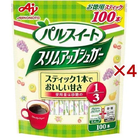 ●「パルスイート スリムアップシュガー」は、砂糖の使用量1/3で同じ甘さのスティックシュガーです。