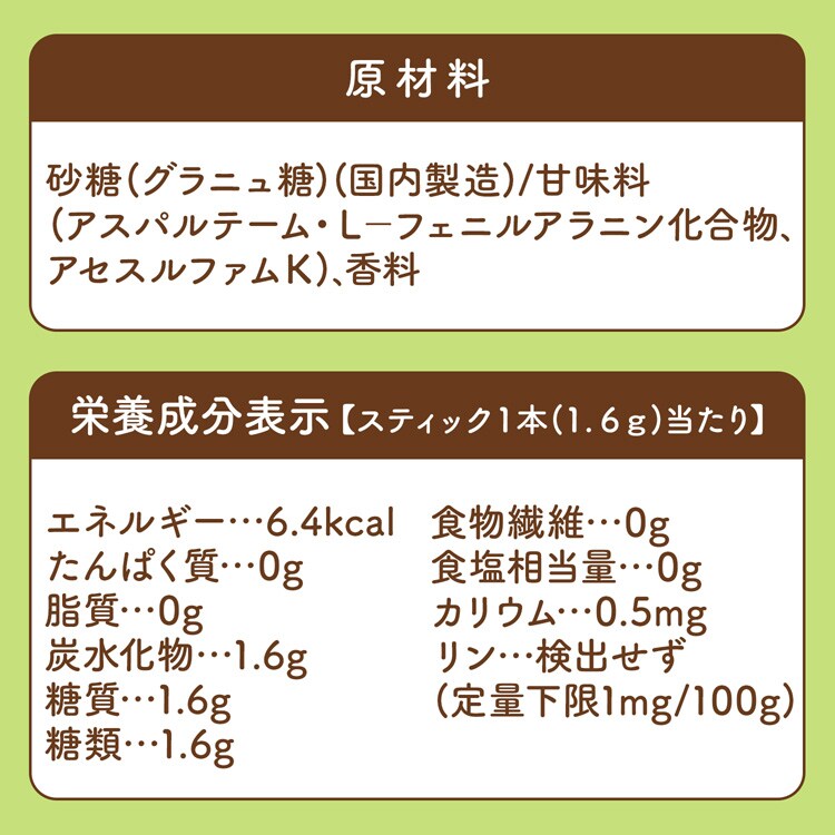 | 砂糖(グラニュー糖)(国内製造)/甘味料(アスパルテーム・L-フェニルアラニン化合物、アセスルファムK)、香料 |