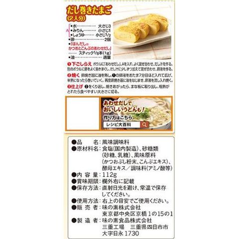 【ほんだし かつおとこんぶのあわせだし スティックの商品詳細】