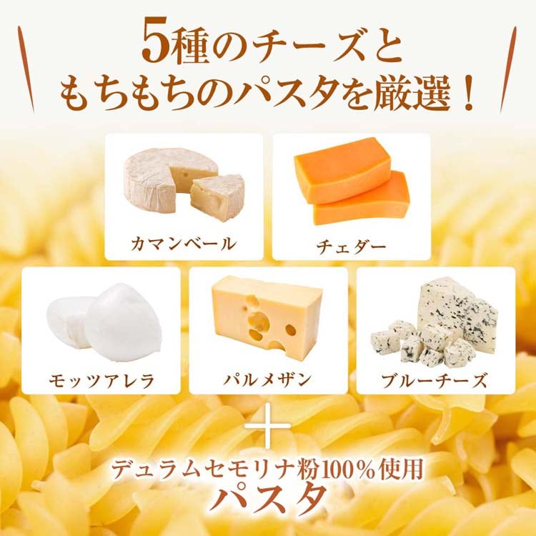 ●5種のチーズ入り濃厚とろとろチーズソースがもちもちパスタ(マカロニ)にたっぷりとからまった、チーズ好きにはたまらないマッケンチーズが、お湯を注ぐだけで簡単に楽しめます。