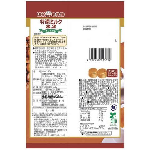 | 砂糖(国内製造)、水飴、粉乳、生クリーム、加糖練乳、バター、コーヒー、GABA、食塩/着色料(カラメル)、香料、乳化剤、酸味料、(一部に乳成分・大豆を含む) |