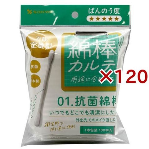 綿棒カルテ 01.抗菌綿棒 1本包装 (100本入×120セット)
