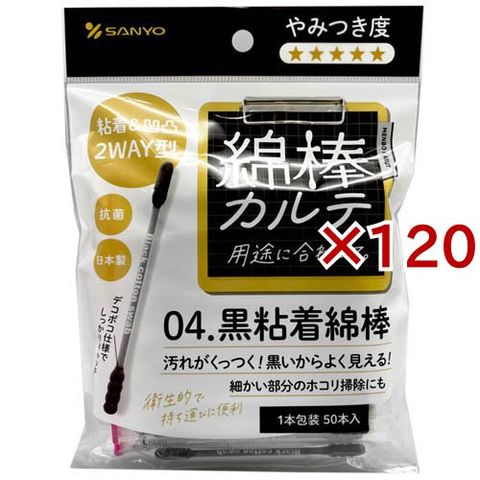 綿棒カルテ 04.黒粘着綿棒 1本包装 (50本入×120セット)