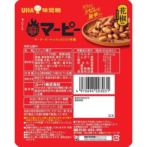 | ピーナッツ(中国)、植物油脂、食塩、香味食用油、唐辛子、花椒、豆板醤、水飴、ネギ、ガーリック/調味料(アミノ酸等)、香辛料抽出物、(一部に小麦・ピーナッツ・大豆を含む) |