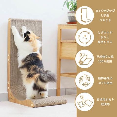 ●バリバリボードシリーズは、壁などの平坦で広い場所で立ってのびのびつめとぎ派の猫におすすめのL字型つめとぎです。