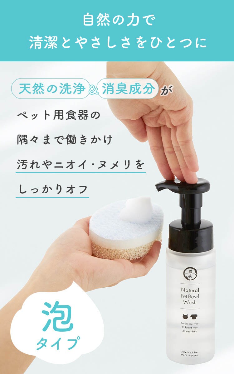 ・天然の洗浄&消臭成分がペット用食器の隅々まで働きかけ、汚れやニオイ、ヌメリをしっかりオフ。
