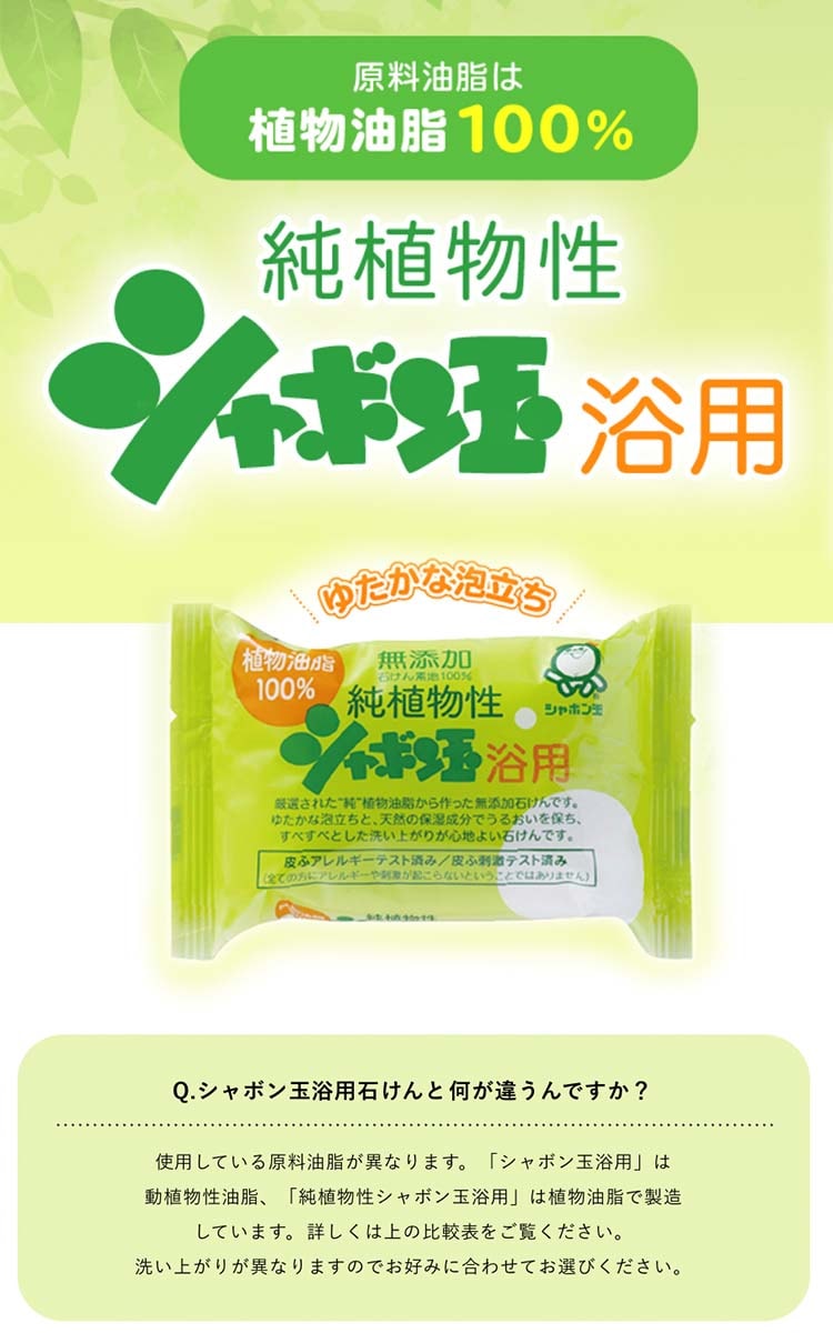 ●厳選された「純」植物油脂から作った無添加石けんです。
