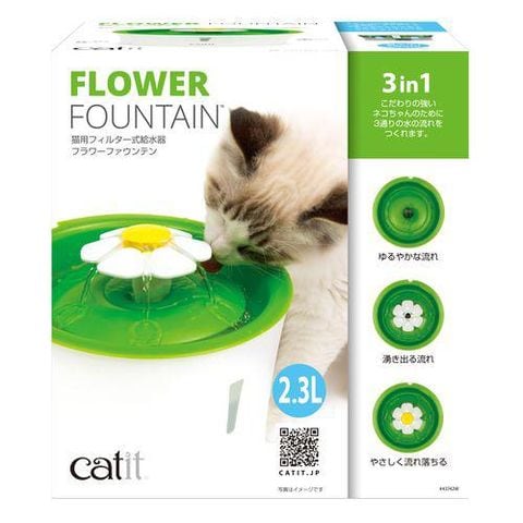 ●ファンネル上部のフラワーパーツを付けることによって「緩やかな水の流れ」、「湧き出る水の流れ」、「穏やかな川のような流れ」を作れ、ねこちゃんの「飲みたい」を刺激する水が流れるように設計されています。