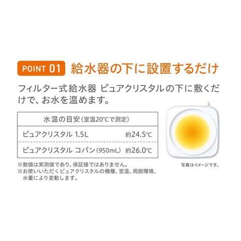 ●フィルター式給水器 ピュアクリスタルの下に敷くだけで、お水を温めます。